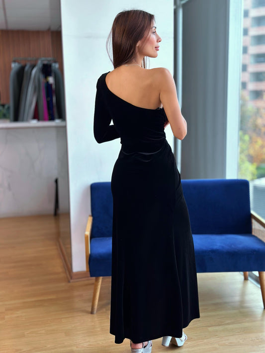 VESTIDO ASIMETRICO RECORTES NEGRO